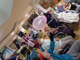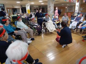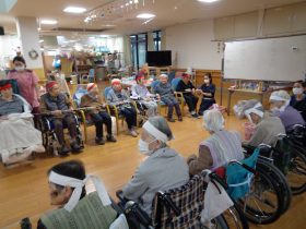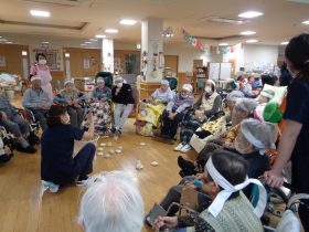 毎年恒例行事の1つである運動会。今年も10月末、施設内で開催する事が出来ました。利用者様が赤組、白組に分かれて点数を競います✊皆さん、ハチマキ姿で気合もばっちり!
