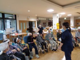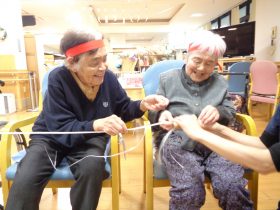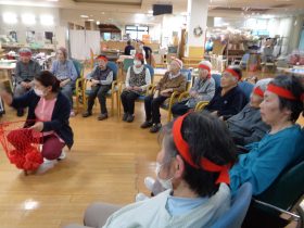 毎年恒例行事の1つである運動会。今年も10月末、施設内で開催する事が出来ました。利用者様が赤組、白組に分かれて点数を競います✊皆さん、ハチマキ姿で気合もばっちり!