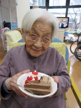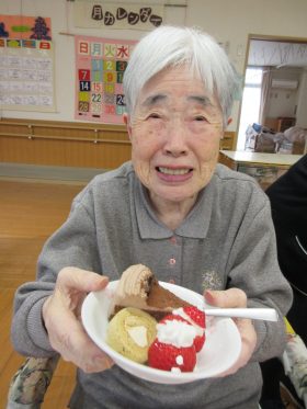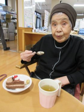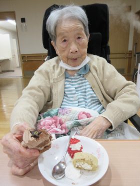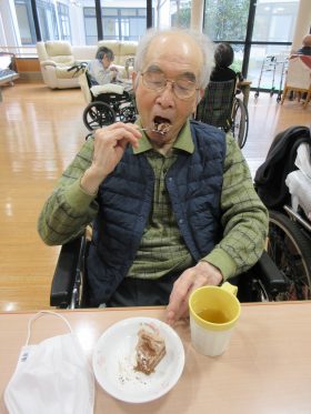 ご利用者様同士で「美味しいな~。」「そのケーキも美味しそう。」等声を掛け合われたり、懐かしい歌に耳を傾けながら口ずさまれるご様子も見られ、季節を感じていただけるひとときとなりました。