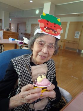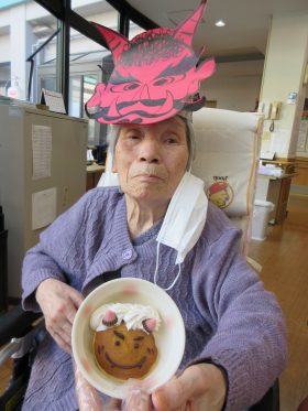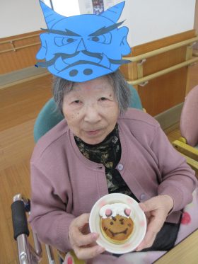行事の後は、節分にちなんだおやつを召し上がっていただき、楽しい時間を過ごしていただきました。
